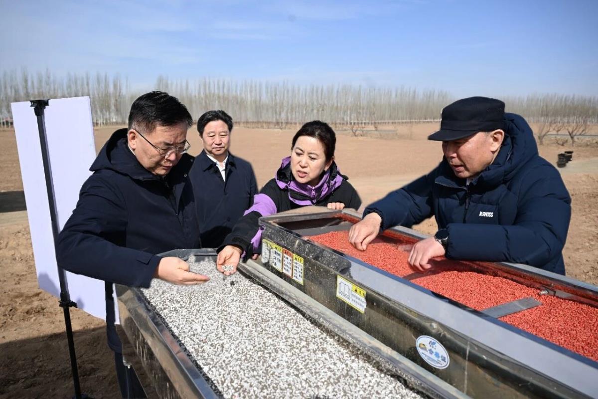 3月15日,包钢在临河农场详细了解种子、肥料等农资准备,询问高标准农田建设进展和优质农产品生产销售情况。记者 韩卿立 摄