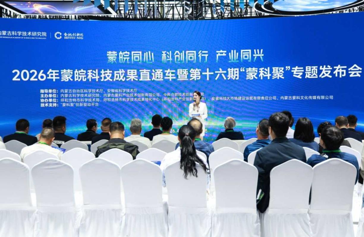 4月27日,由内蒙古自治区科技厅、安徽省科技厅指导,内蒙古科学技术研究院、内蒙古蒙科产业技术创新有限公司、中科合肥技术创新工程院联合主办的2026年蒙皖科技成果直通车暨第16期“蒙科聚”专题发布会在合肥举行。